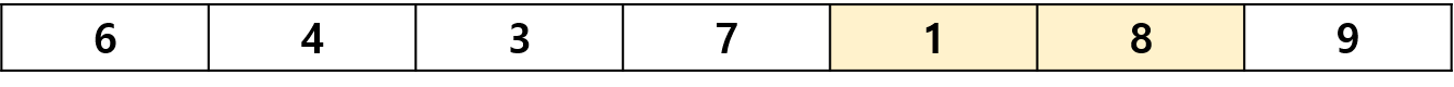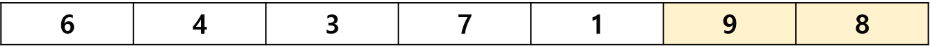 먼저 끝에 있는 두 요소 9와 8부터 시작