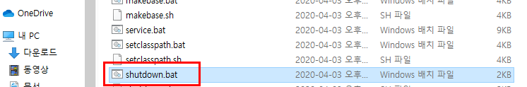 중지할 때는 bin폴더의 shutdown.bat 프로그램을 이용한다. 혹은 그냥 창을 닫아도 된다.