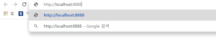 12. 주소창에 로컬 호스트와 조금 전 설정한 포트번호 8888로 접속한다.