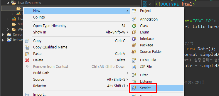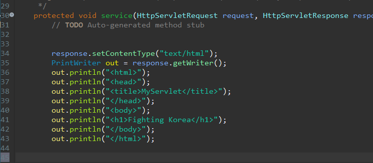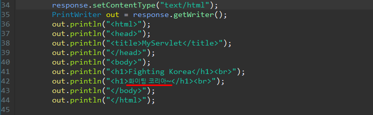 5. Servlet이 생성되고, 코딩을 했다. Servlet의 코딩은 jsp와 비교해 디자인적인 부분을 구현하기 매우 어렵다.